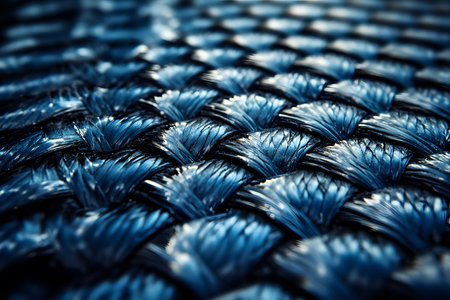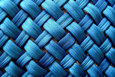 Detailed close-up of a blue woven pattern intricate texture and craftsmanship. ideal for textile design inspiration, showcasing the artistry in weaving details, perfect for catalog, print, and digital media use. Generative AI