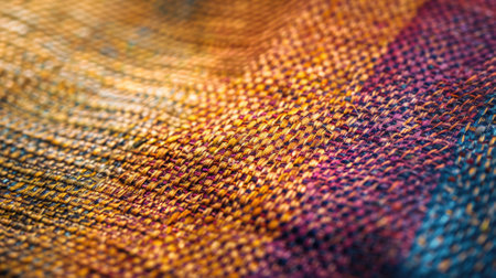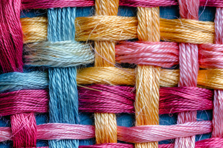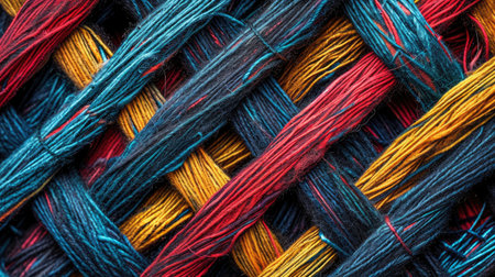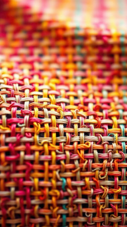 Close-up of colorful textile weave with intricate twisted yarn patterns. That the image is generated using AI.
