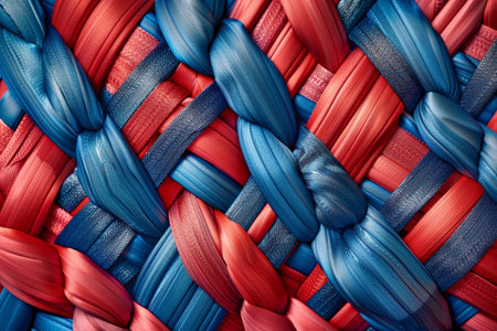 Close-up of textured red rope knots in detailed pattern. That the image is generated using AI.
