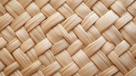 This woven texture showcases natural fibers interlaced to form an intricate pattern, perfect for various crafts, home decor, or artistic projects, highlighting craftsmanship and materials.