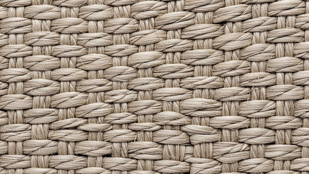 Close up photo of surface made of woven straw. Natural material for furniture and interior.