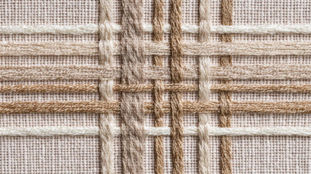 Detailed Macro Shot of Natural Woven Fabric Texture in Neutral Beige and Brown Tones