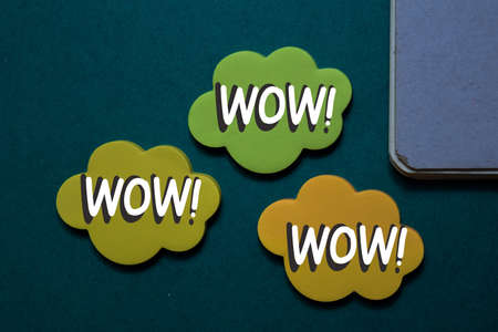 WOW write on stick note isolated on Office Desk
