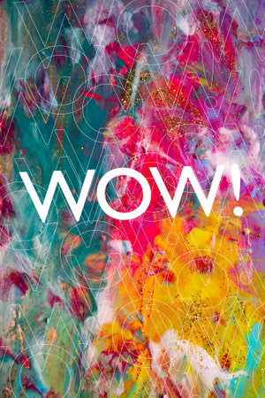 The word Wow with a colorful paint splash effect, creating a vibrant and exciting visual statement.