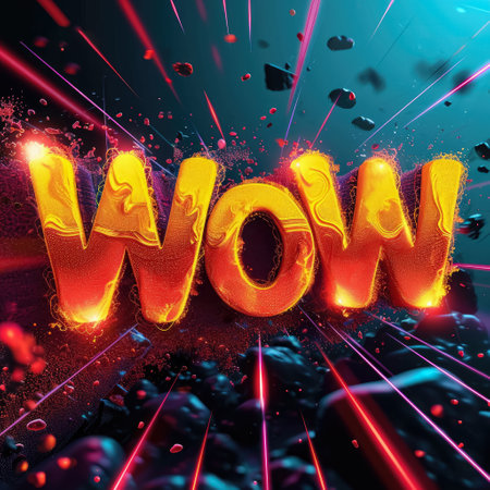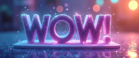 A dazzling display of the word WOW crafted from shimmering materials radiates vibrant neon hues against a softly blurred background. This eye-catching image captures the essence of excitement and wonder, inviting viewers to experience a moment of awe and inspiration.