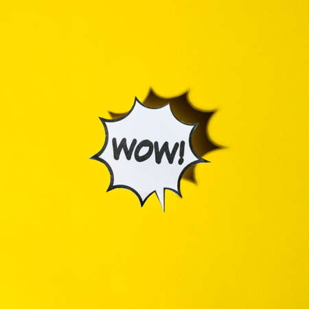 comic cartoon speech bubble wow emotions yellow backdrop. High quality photo