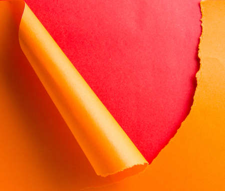 Pink and orange papers bending together over yellow color paper in abstract form. Abstract color paper background.