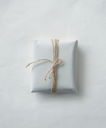 Gift box wrapped in kraft paper and tied with twine