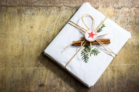 Presents in rustic style for Christmas seasonal holiday