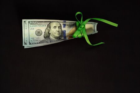 Four hundred us dollars on a black background tied with a green ribbon