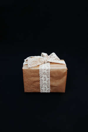 Elegant gift box wrapped in brown paper with a dark ribbon, perfect for special occasions and celebrations.