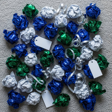 Picture a crumpled and forgotten piece of wrapping paper, displayed to highlight the meaning of gift-giving --chaos 30 --ar 16:9 --v 6.1 Job ID: 7c5145e4-ba5b-4186-9e17-07e6506b570d