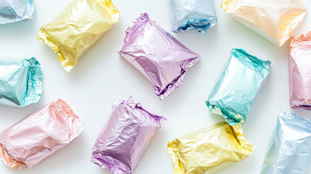 Candy wrappers made of foil with the reverse side