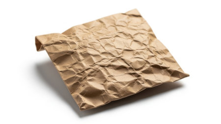 Full crumpled disposable bag of brown kraft paper on a white background. Top view. Copy, empty space for text.