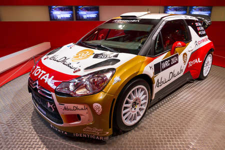 Citroen DS3 WRC in the showroom on the Champs Elysees in Paris, France, on February 20, 2014