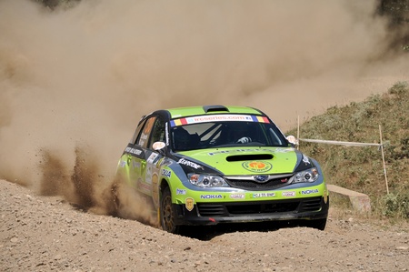 Sibiu, Romania - July 20 2012: Simone Tempestini/Lucco Baggio with their Subaru at the IRC Sibiu Rally in 2012