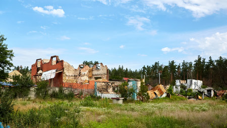 Moshchun, Ukraine - August 25, 2022: For more than a month there were battles between Ukrainian and russian occupant forces in the vicinity of the village of Moshun in the Kiev region.