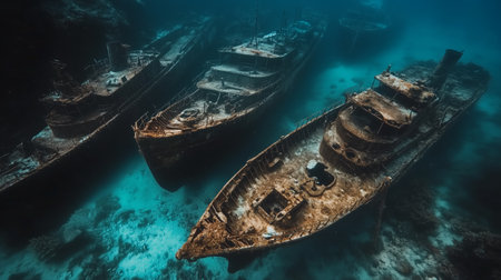 Deep sea diving adventure exploring shipwreck, coral reef, and sea life generated by artificial intelligence