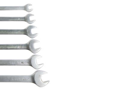Chrome wrenches of various sizes. Isolated on white background.