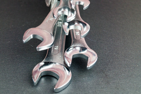 Wrenches. Wrenches on a black wooden surface