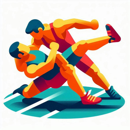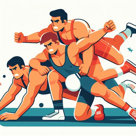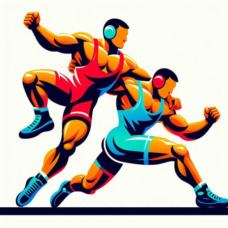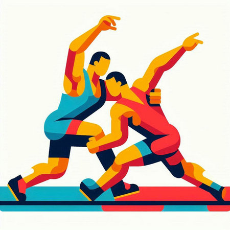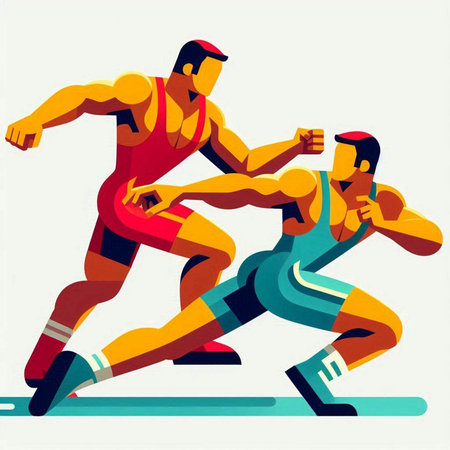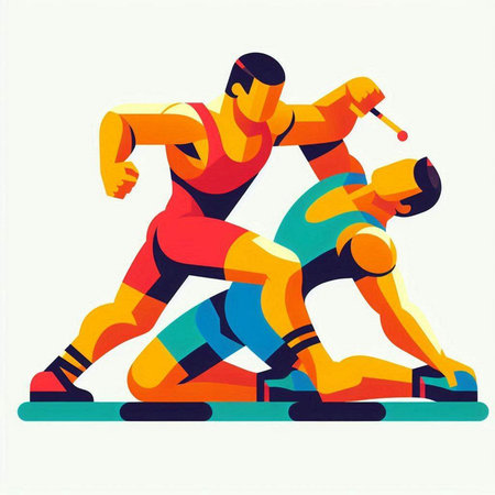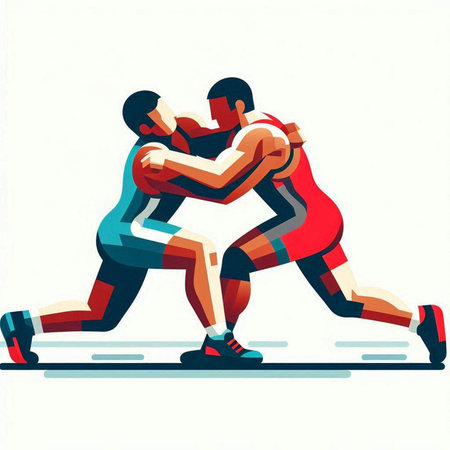 Wrestling match of two strong fighters Fight between freestyle wrestler's Sports opponents competing in battle Men athletes at tournament Flat illustration art on white background