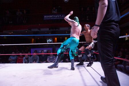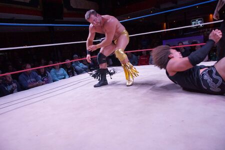 Mexico City, Mexico - Nov 16, 2025: Mexican women's wrestling is a spectator sport that combines athleticism and acrobatics performed by masked wrestlers