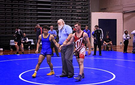 AUCKLAND-JUL. 3, 2015: Wrestlers, 16-20 years old from USA, Australia, New Zealand and American Samoa participate and compete in the International Downunder Wrestling Challenge at the North Shore Event Centre, Auckland New Zealand.