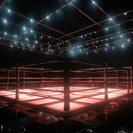 Epic empty ring for fights without rules and MMA in the spotlight on the fight night AI