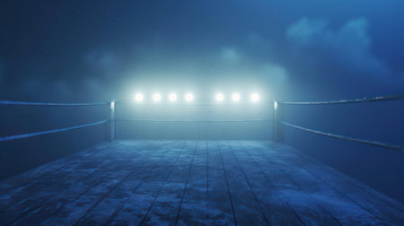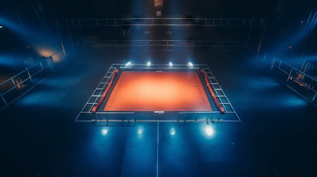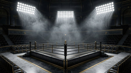 Boxing ring arena and spotlight floodlights design. generative ai art