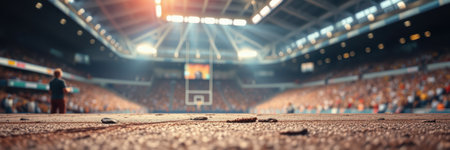 Title serenity in solitude illuminated professional basketball court in an empty arena