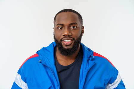 Portrait handsome muscular Black man with cheerful expression