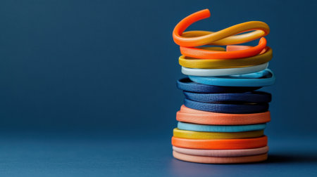 A visually appealing arrangement of colorful elastic hair ties stacked on a dark background, ideal for capturing vibrant lifestyle moments and fashion aesthetics.