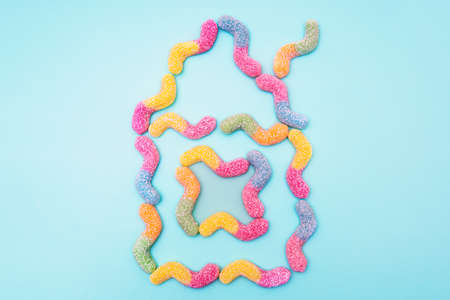 Colorful jelly worms close up background. AI generated illustration