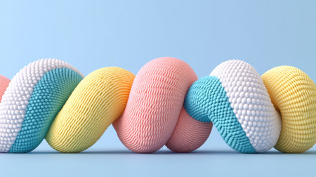 Close-up of colorful rubber bands intertwined, unusual perspective, soft pastel light.