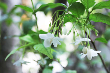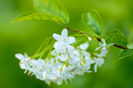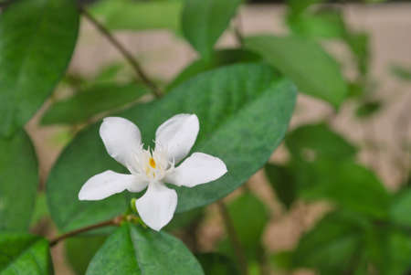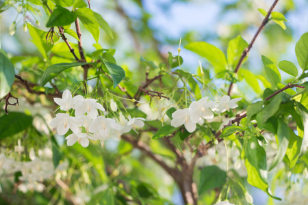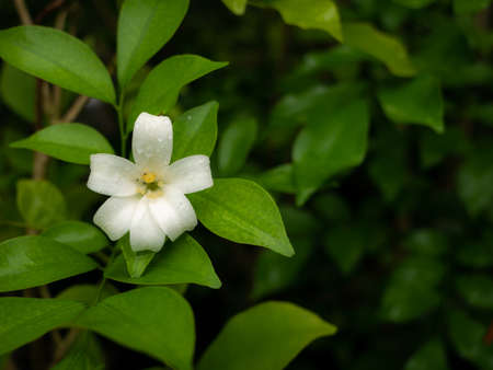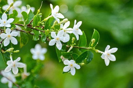 White Jasmine flower blooming in the garden with green leaves background