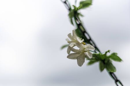 white jasmine with dew on tree