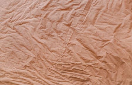 Crumpled fabric texture, dark brown cloth background. Copy space