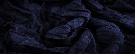 dark blue wrinkled fabric as background, blue fabric background, backgrounds and texture