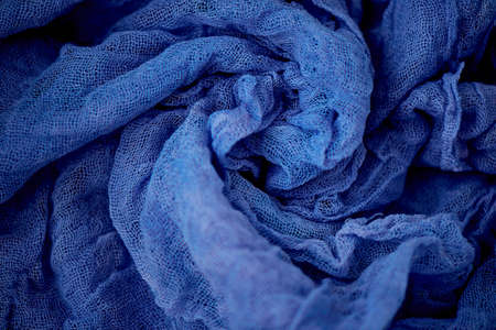 creased blue color textile texture background selective focus
