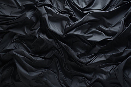Wrinkled black fabric texture, perfect for backgrounds, fashion design, and luxury textile projects.