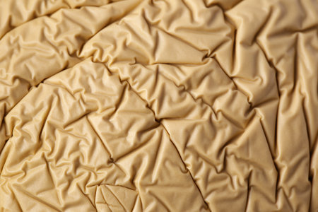 This image showcases a close-up of soft, crumpled natural fabric in a neutral beige tone, highlighting its gentle texture and elegant folds. Perfect for design projects.