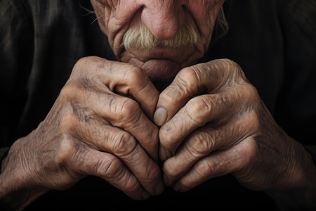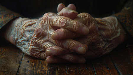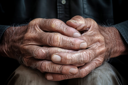 Elderly hands clasped together expressing hope and resilience