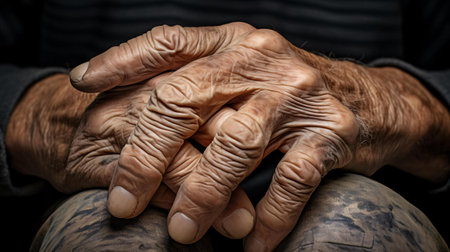 Dry and wrinkled skin of an older person