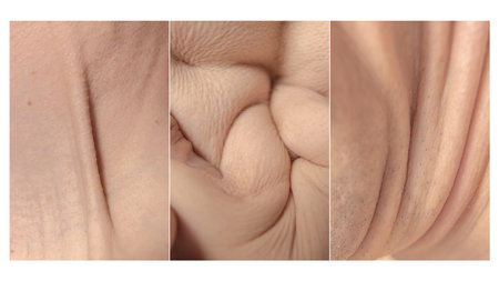 Picture of wrinkles on the skin of different parts of the human body.