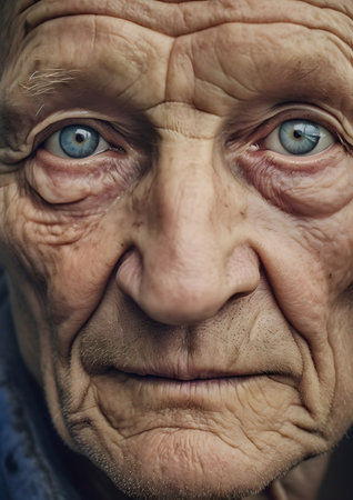 Portrait of elderly man with blue eyes. close-up. Generative AI
