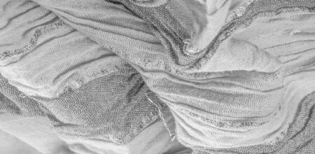 Closeup of crumpled black and white fabric texture background.
