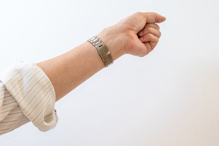 Male hand on white background with watch