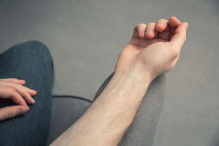 man suffering pain in hand top view