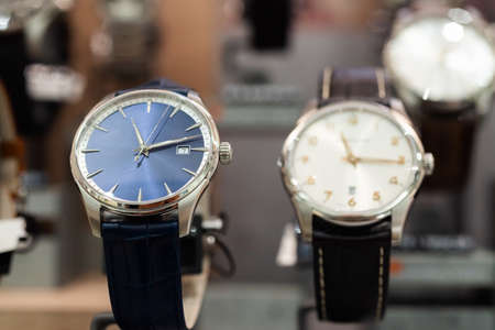 Campos, Mallorca, Balearic Islands / Spain, October, 19, 2019: View of several wristwatches in a market stall, at the local Saturday street market