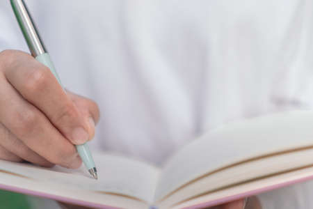 Close up of female hand with pen preparation to writing somethings in notebook. Conceptual of Education or Writer on working.